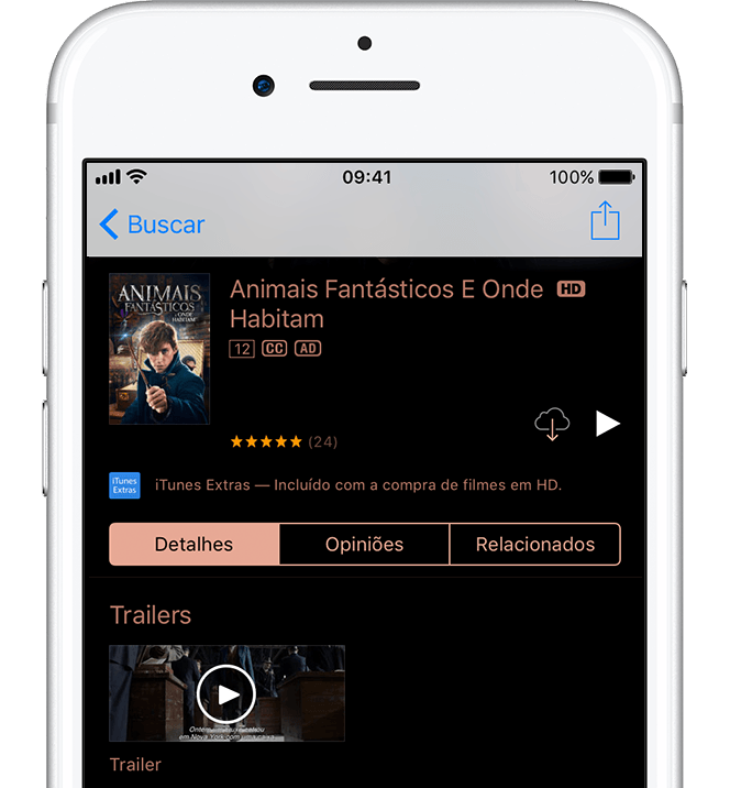 Para fazer download de um vídeo comprado, toque ou clique em