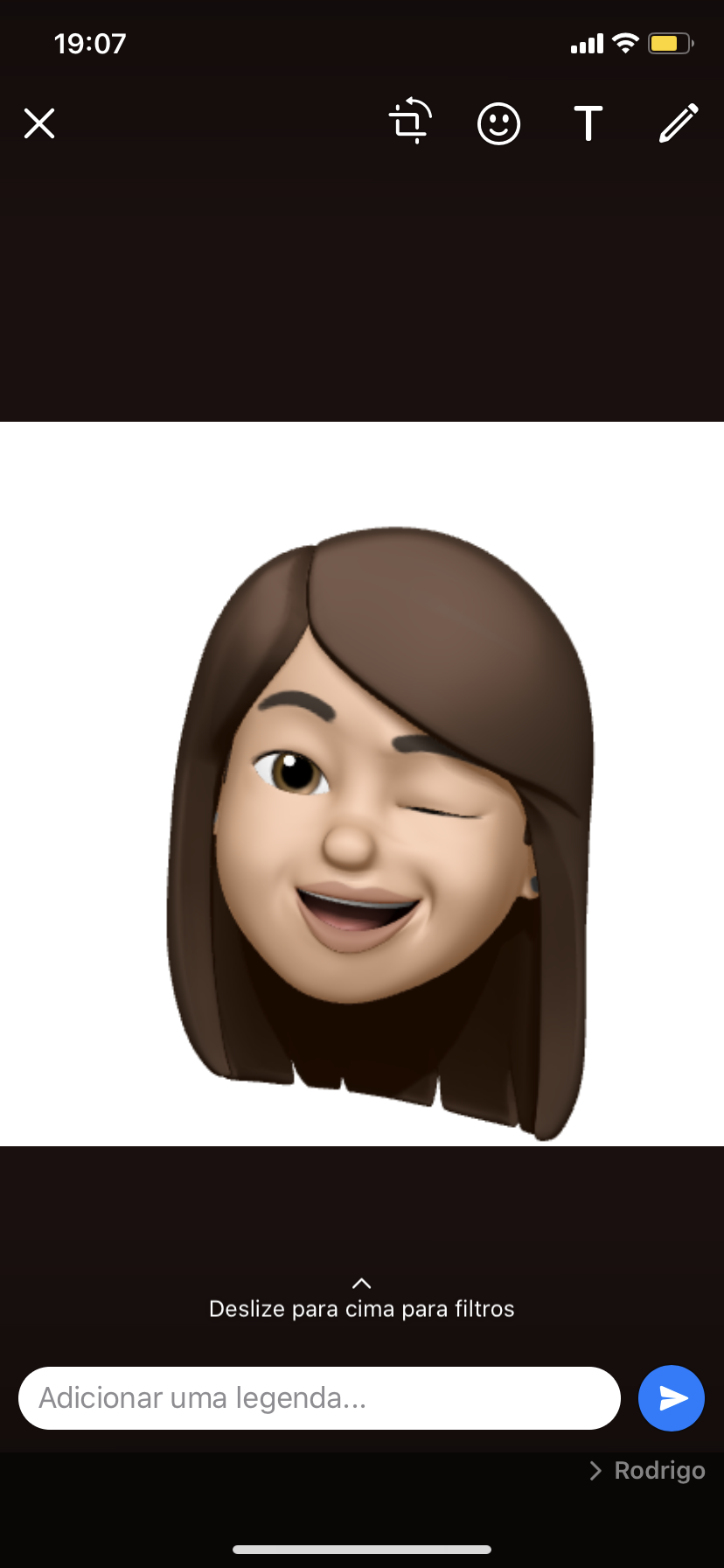 Na hora de selecionar meu Memoji adesivo ele chega na mensagem como foto