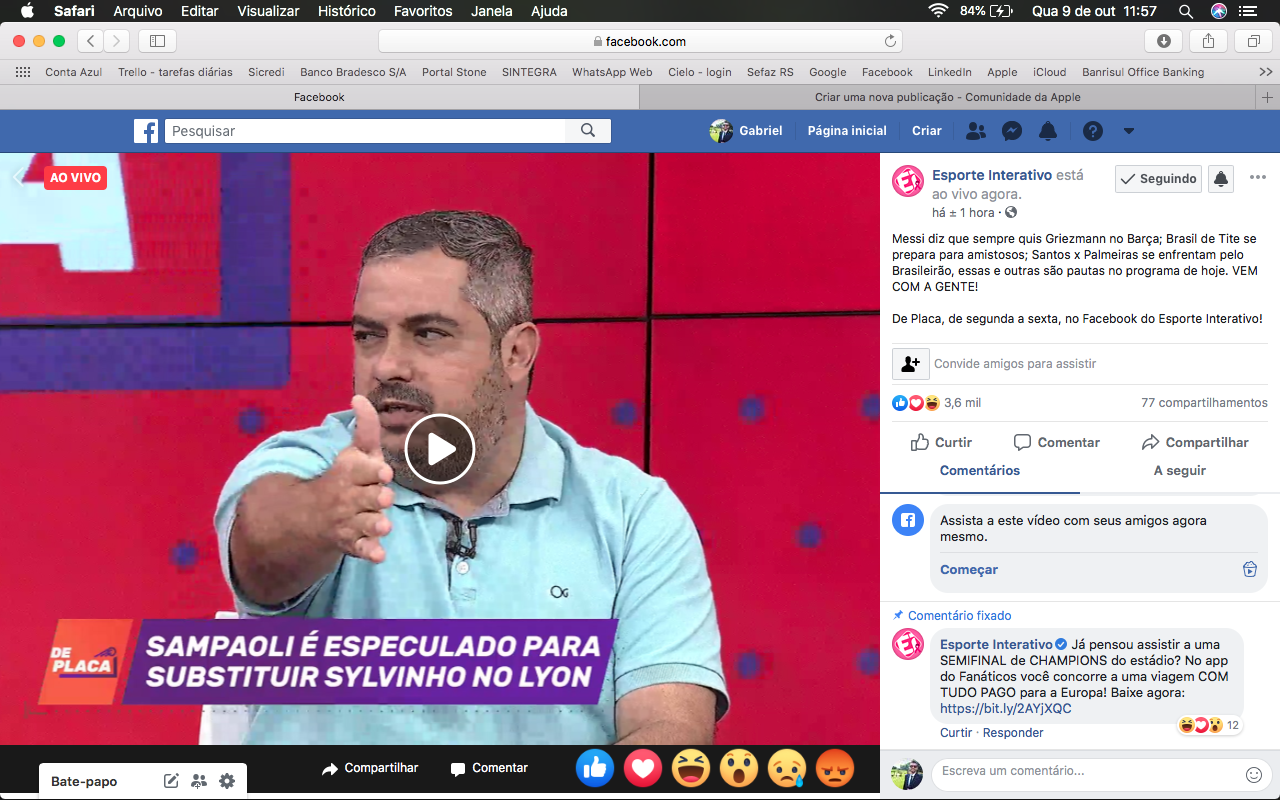 Eu estou com um problema com a reprodução de certos vídeos. Por exemplo, estou navegando no Facebook (imagem abaixo), e o Safari não abre videos de live, fica com o símbolo de play, e quando clico no símbolo, ele não reproduz. Esse problema não acontece somente no Facebook, mas em vários outros sites! Peço a ajuda de todos. Obrigado!