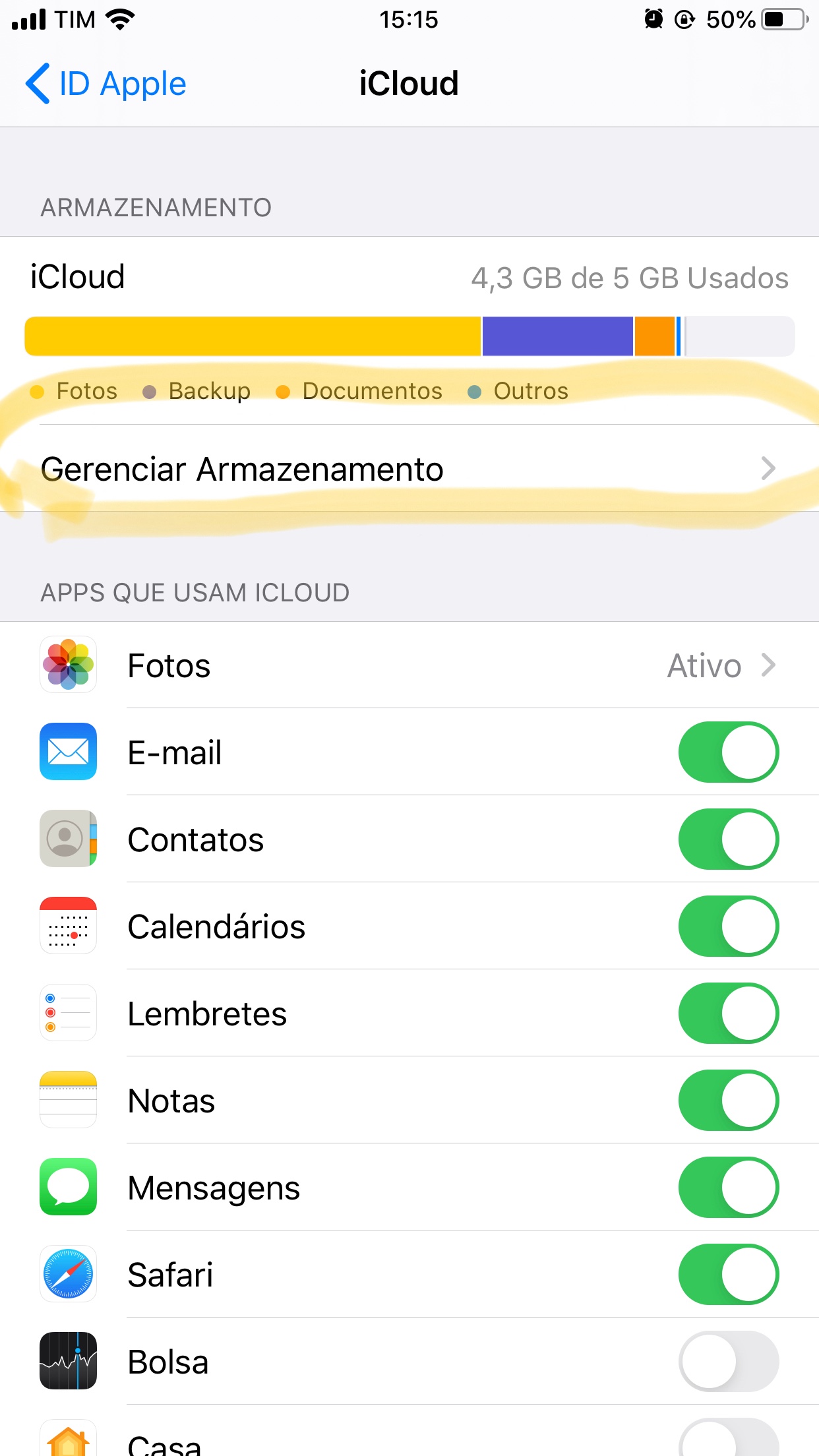 Tenho o plano inicial do iCloud (5 gigas) e ao tentar fazer o upgrade para o plano de 50 gigas simplesmente não abre no meu aparelho a opção mudar de plano. O que eu faço?