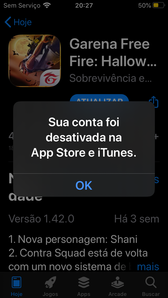 Se você receber a mensagem "Sua conta foi desativada na App Store e iTunes"