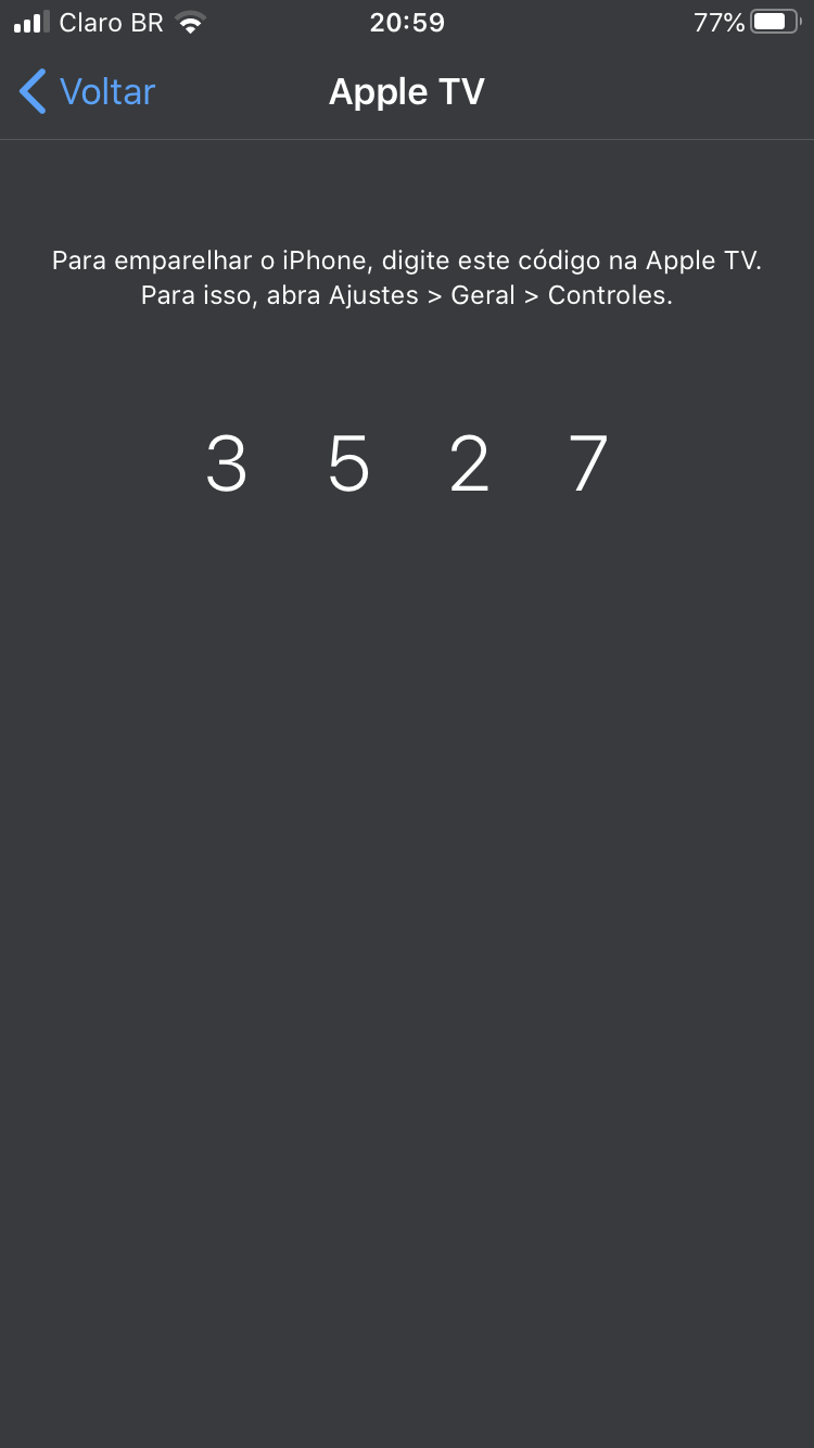 Como eu coloco os quatro dígitos da Apple TV no Ajustes do IPhone, sendo que não aparece “Controles” ou opção pra inserir algum código.