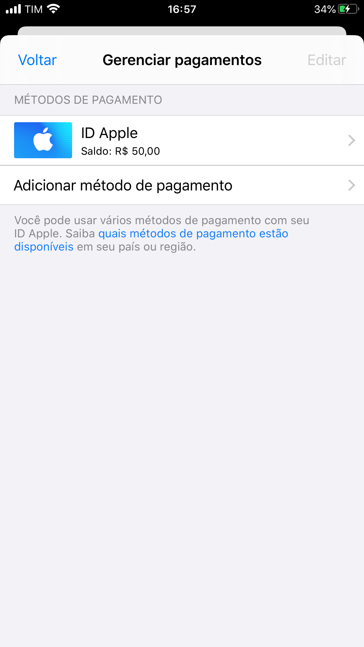 selecione nenhum método de pagamento