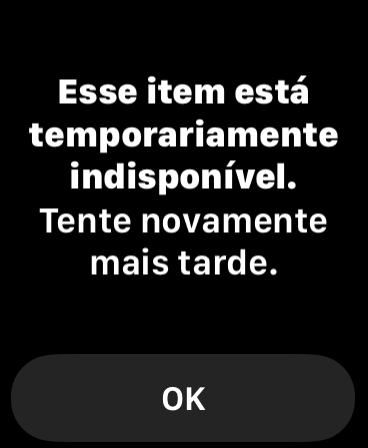 Obrigada por participar das Comunidades de suporte da Apple. Entendo que você está recebendo uma mensagem que o item que deseja baixar no seu Apple Watch está temporariamente indisponível. Você veio ao lugar certo e eu fico contente em te ajudar.