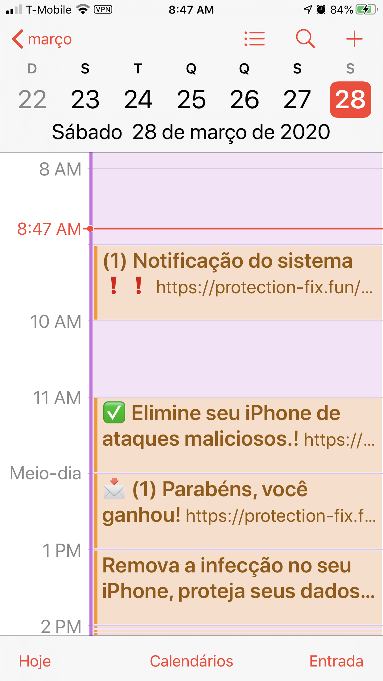 Estou recebendo automaticamente uma mensagem ( evento) no meu calendário onde diz que tenho que atualizar meu telefone, colocar o VPN porque meu telefone está com vírus.