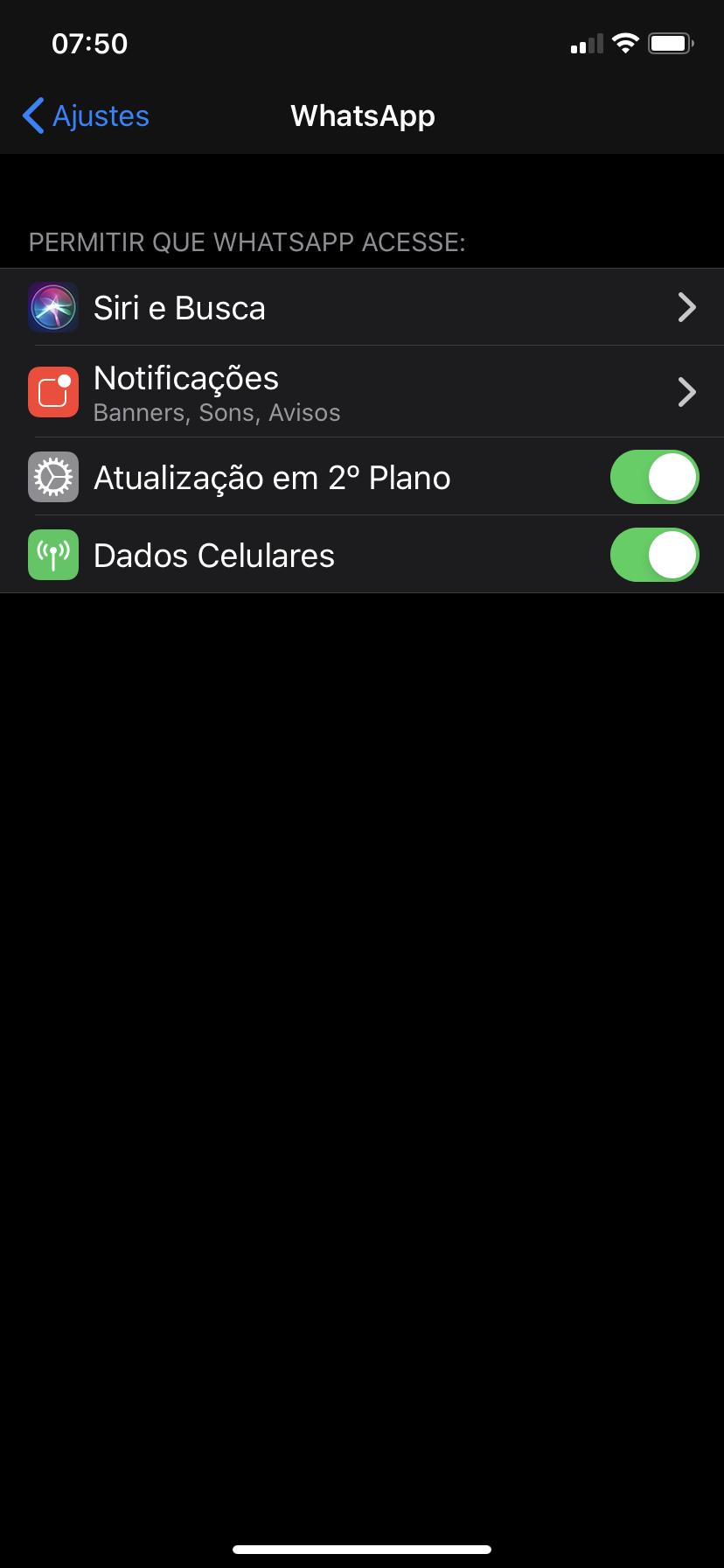 Não consigo permitir acesso dos meus contatos para o WhatsApp. A opção de permitir que o WhatsApp acesse meus contatos não aparece para eu ativar nos ajustes