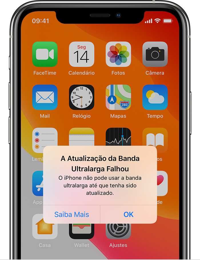 Se você receber este alerta no iPhone 11, iPhone 11 Pro ou iPhone 11 Pro Max, isso indicará que houve um problema na atualização do recurso de banda larga do iPhone. O iPhone não conseguirá usar a banda larga até que ela seja atualizada.