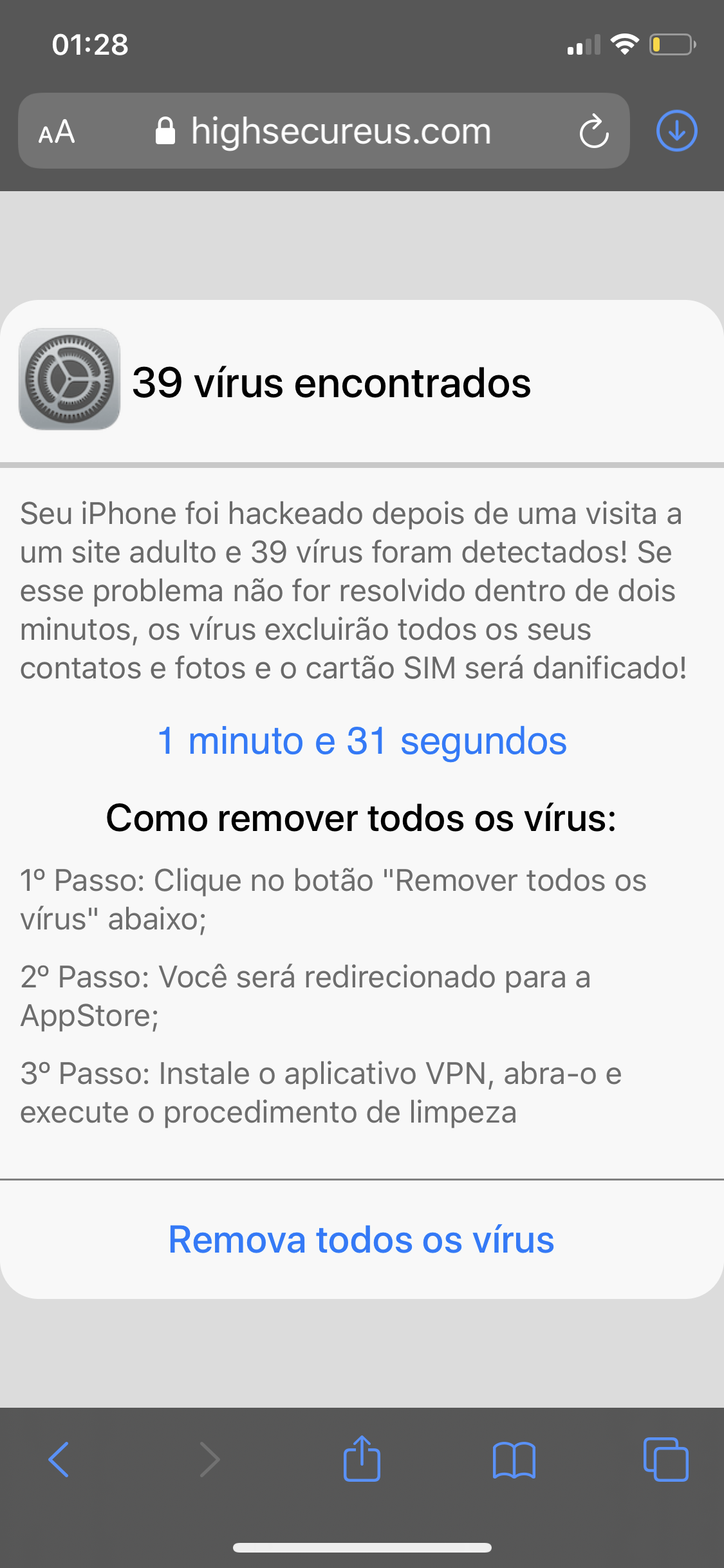 Essa mensagem é uma tentativa de phishing para ter acesso a suas informações, o iphone é 100% seguro em relação a segurança do aparelho e de suas informações