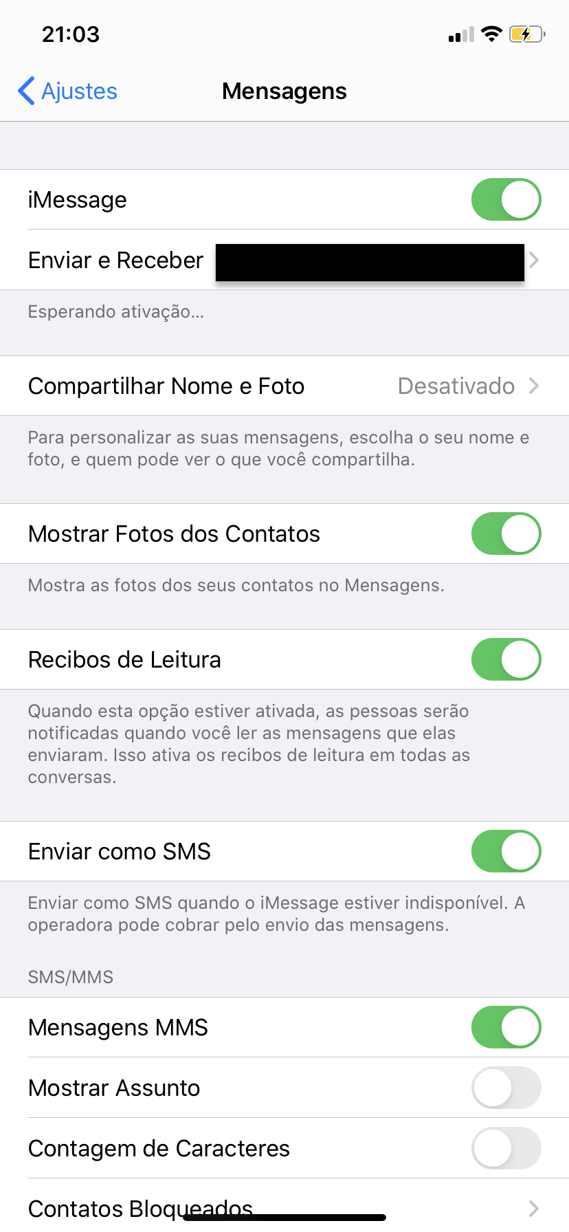 Não consigo enviar mensagens de texto com o meu iPhone , o IMESSAGE está ativo e funcionando.