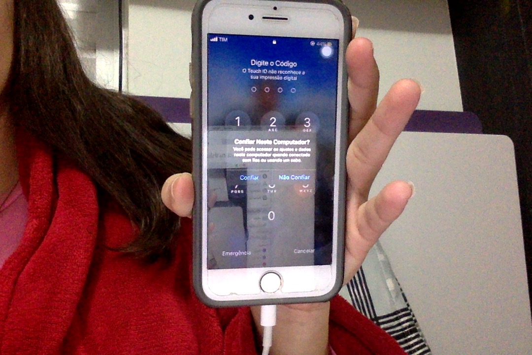 Eu conectei meu iPhone ao MacBook Air, e aparecia aquela mensagem de "confiar no dispositivo ou não "ficava repetindo várias vezes, então parei de responder e bloqueei a tela. Quando liguei de novo a mensagem não saiu mais e não consigo usar o iPhone. O QUE EU FAÇO?