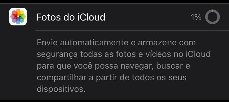 Bom dia, comprei mais armazenamento no icloud, mas as fotos não estão passando pro icloud, fica no 1% e não carrega.
