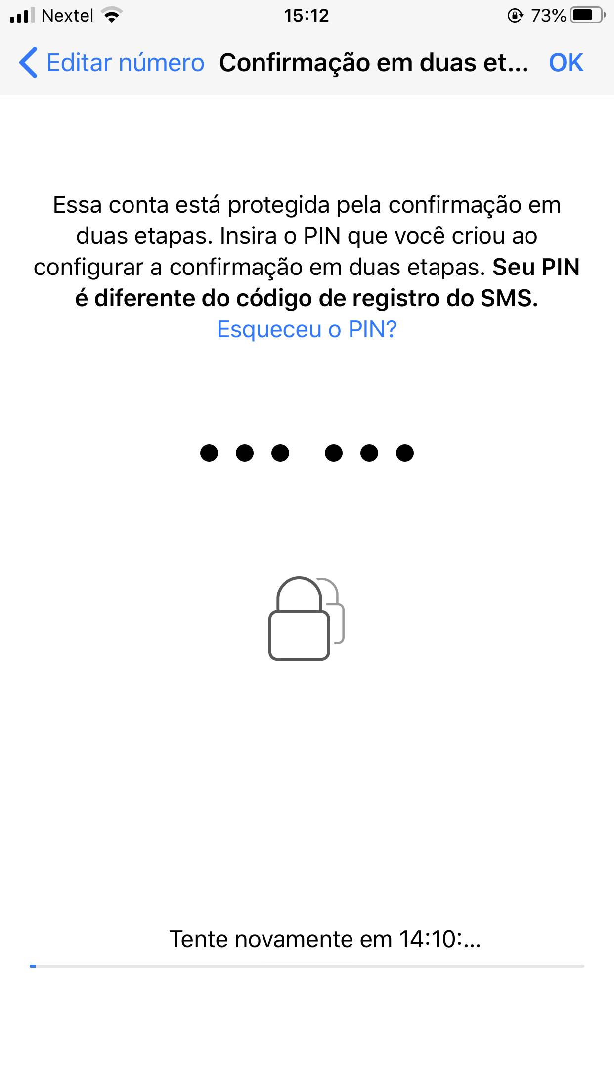 Não consigo desbloquear meu WhatsApp , está pedindo senha pin