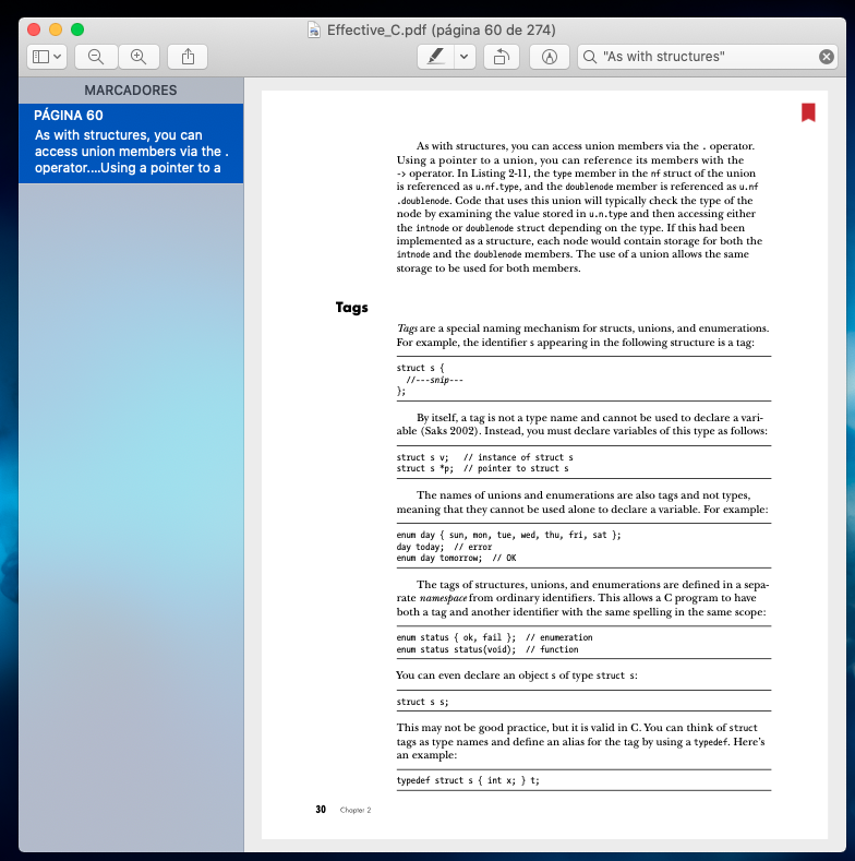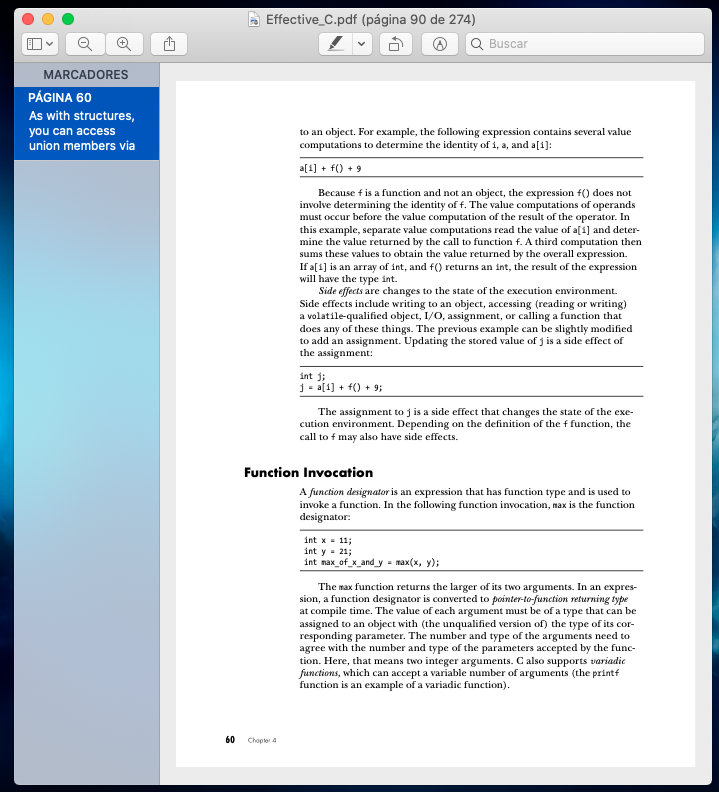 Já essa segunda imagem, após clicar na barra lateral, o marcador me leva para a página 60 do livro (90 do PDF).