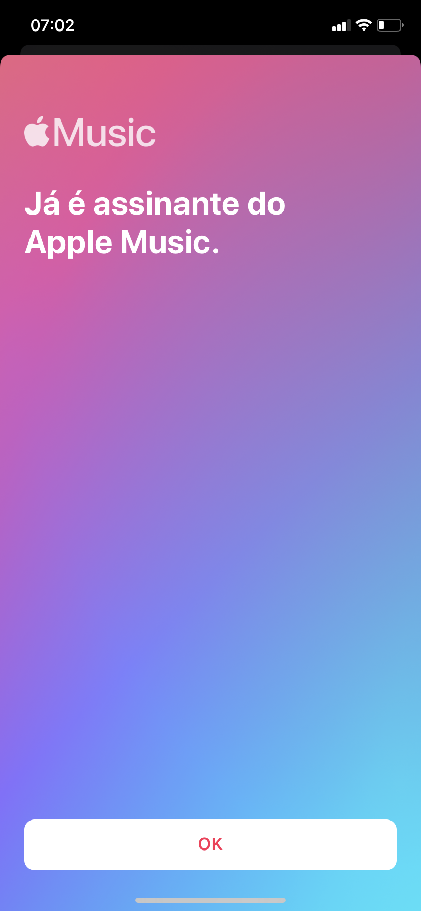 Quando vou reproduzir uma música aparece "Já e assinante do Apple Music"