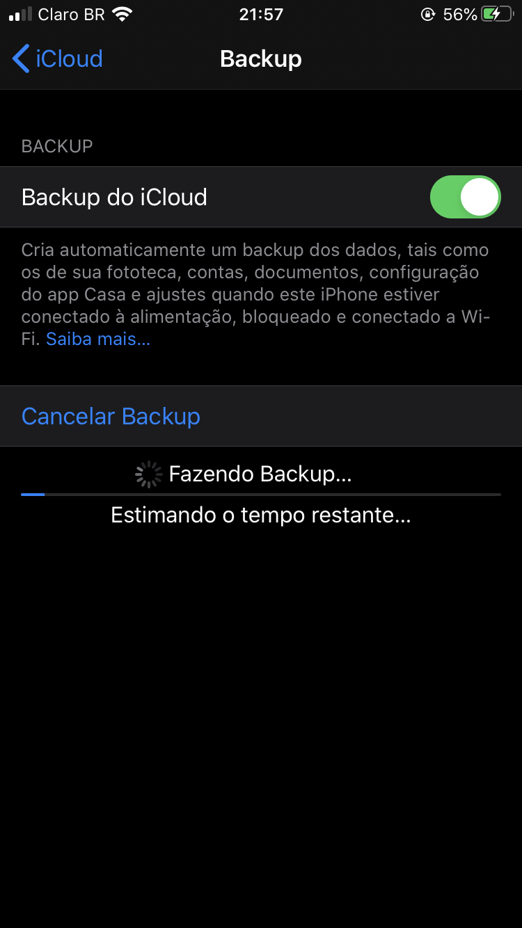 Não estou conseguindo fazer backup só fica aparecendo “estimando tempo restante”
