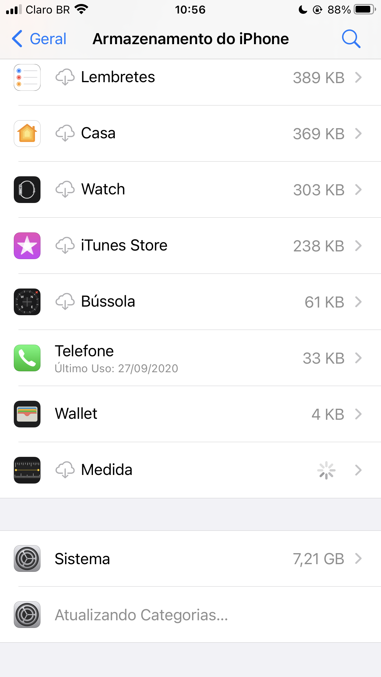 Eu estava com 33 GB de fotos no meu iPhone e liberei metade do espaço, porém não está reconhecendo essa perca de memória e não carrega as categorias que estão consumindo espaço. Somei a memória de cada app q está instalado e não ocupa essas 60 GB que está dizendo que está ocupando, queria saber se tem algo a mais q consome memória ou isso é apenas um erro???