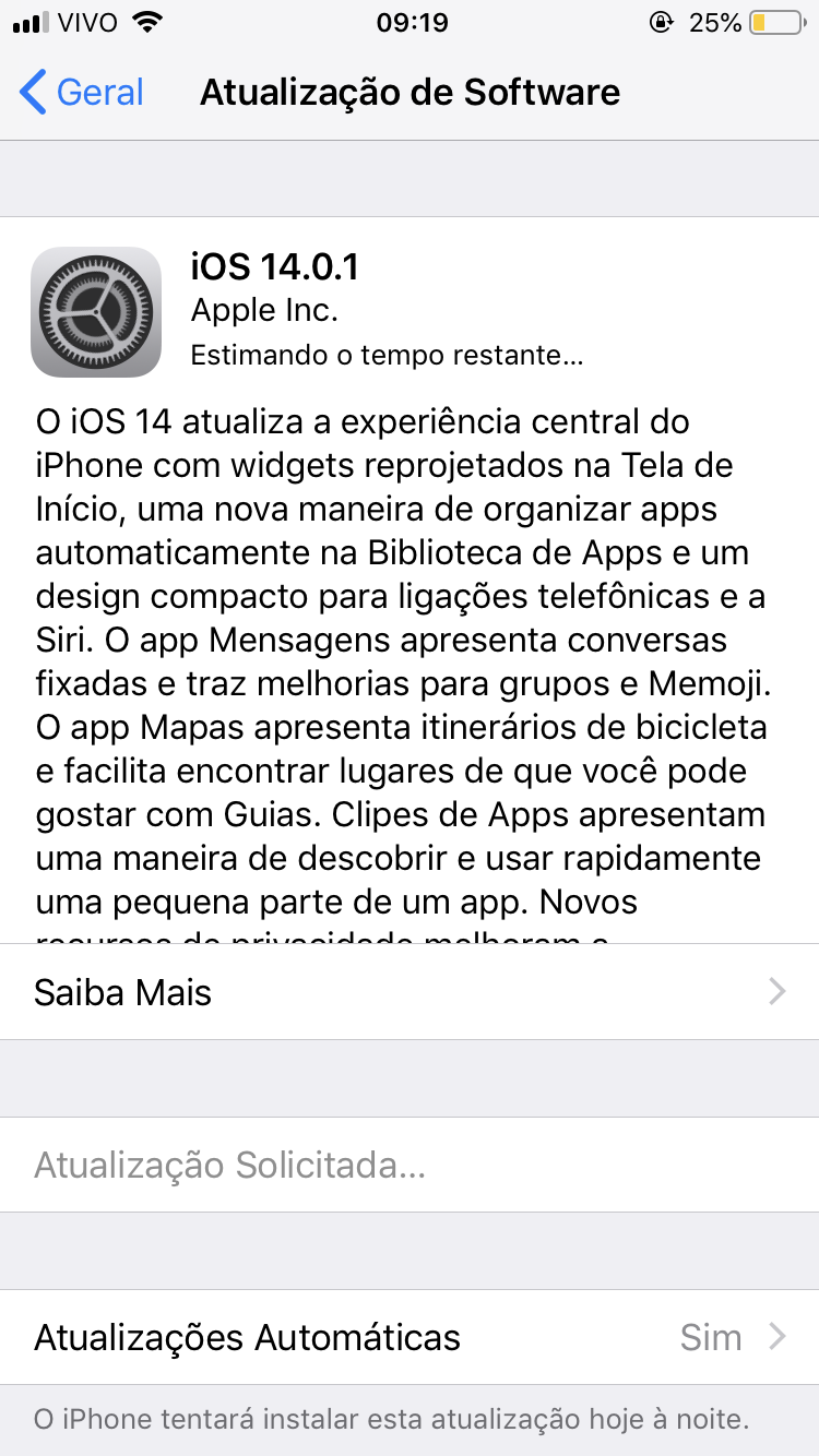 iOS 14 estimando o tempo