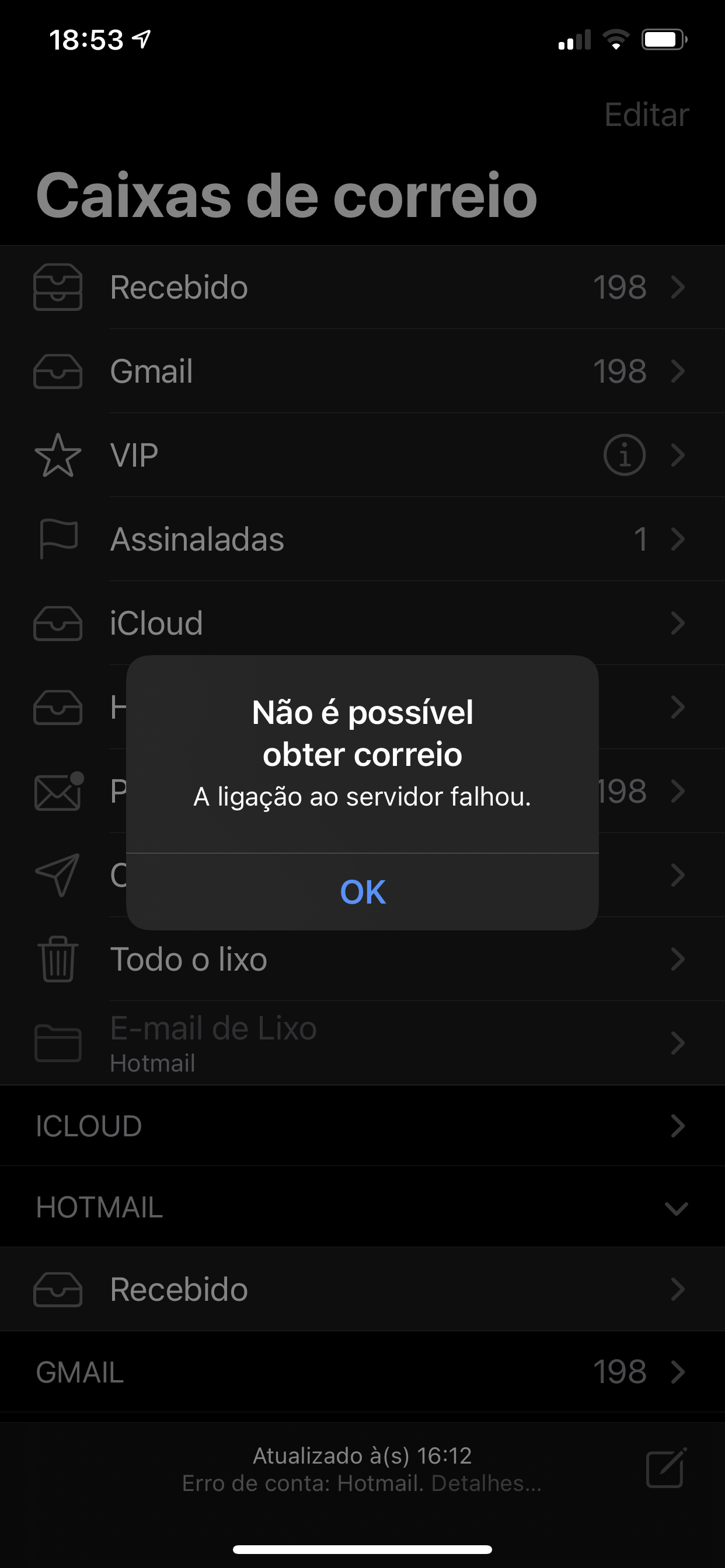on-line o hotmail abre perfeitamente porém na app “Mail” não atualiza as caixas afirmando ser um erro de servidores, o mais estranho é que o Gmail funciona perfeitamente!