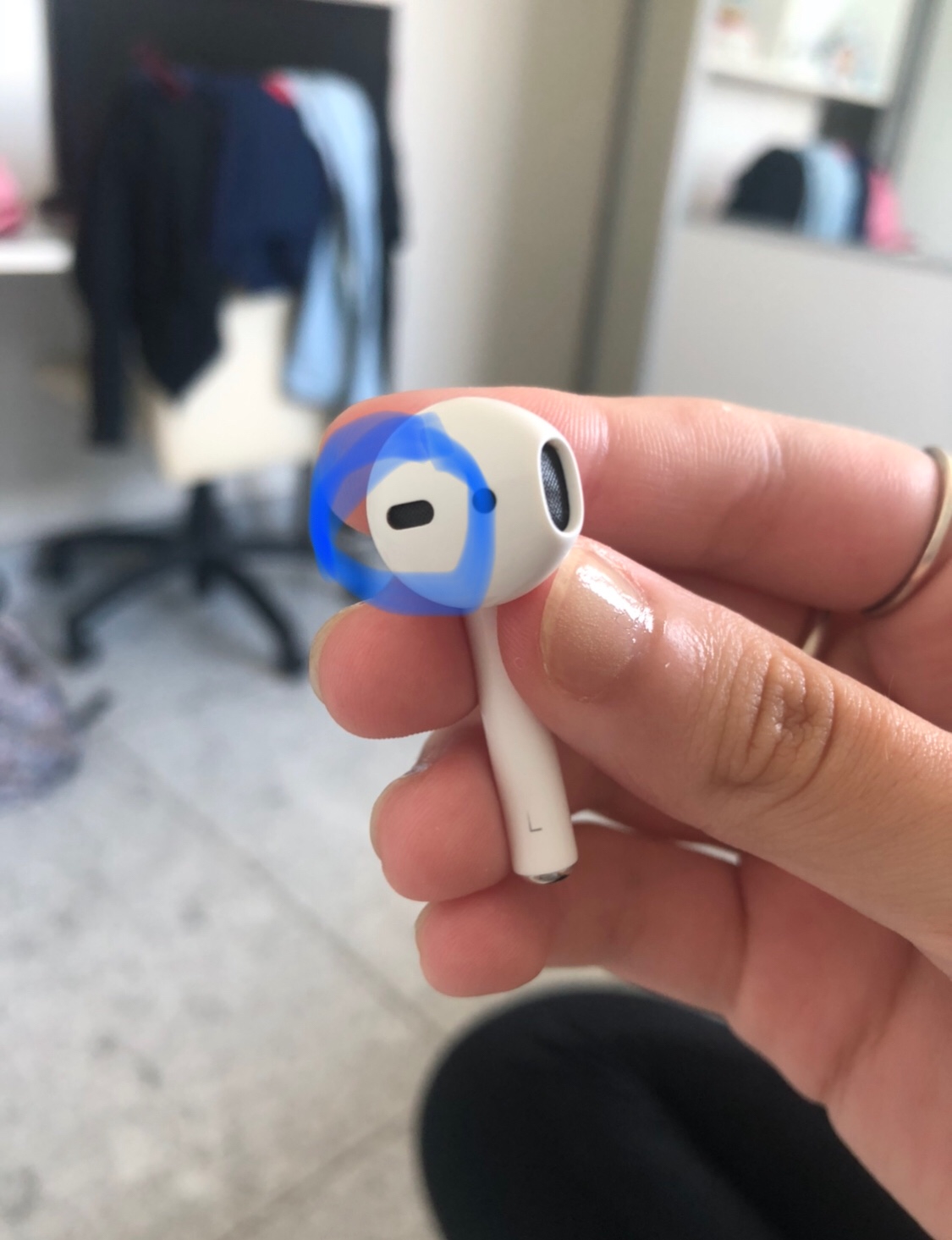 meu fone esquerdo do airpods não está querendo sair som como deveria, todo o som so sai por esse canto (está circulado de azul na foto). O que eu faço para ajeitar?