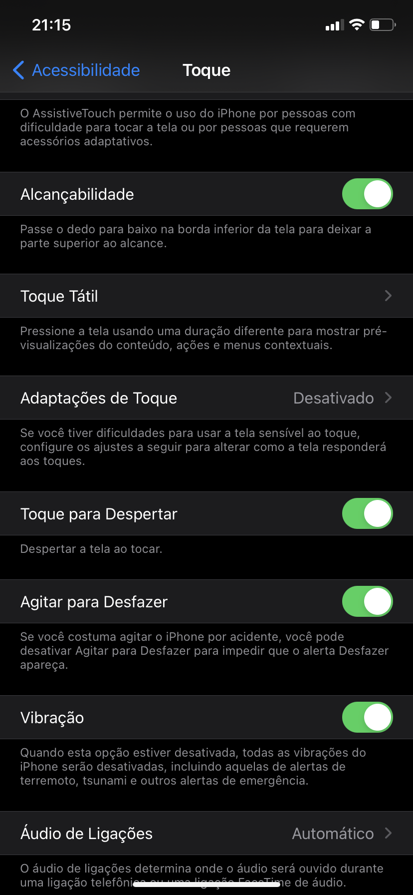 Meu iphone não vibra de jeito nenhum, mesmo tudo estando ativado(como nas fotos). Apenas sinto um bem leve vibrar quando ativo o silencioso, mas durante a ligação ou quando era pra vibrar ele não vibra. Será que é defeito?????