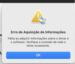 Falha ao adquirir informações sobre o driver e o software. Verifique a conexão de rede e tente novamente.