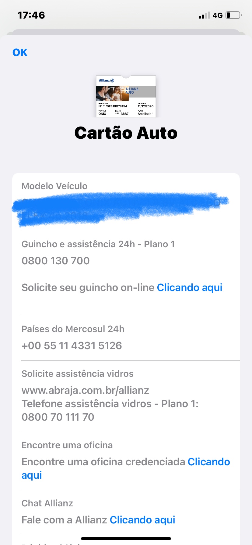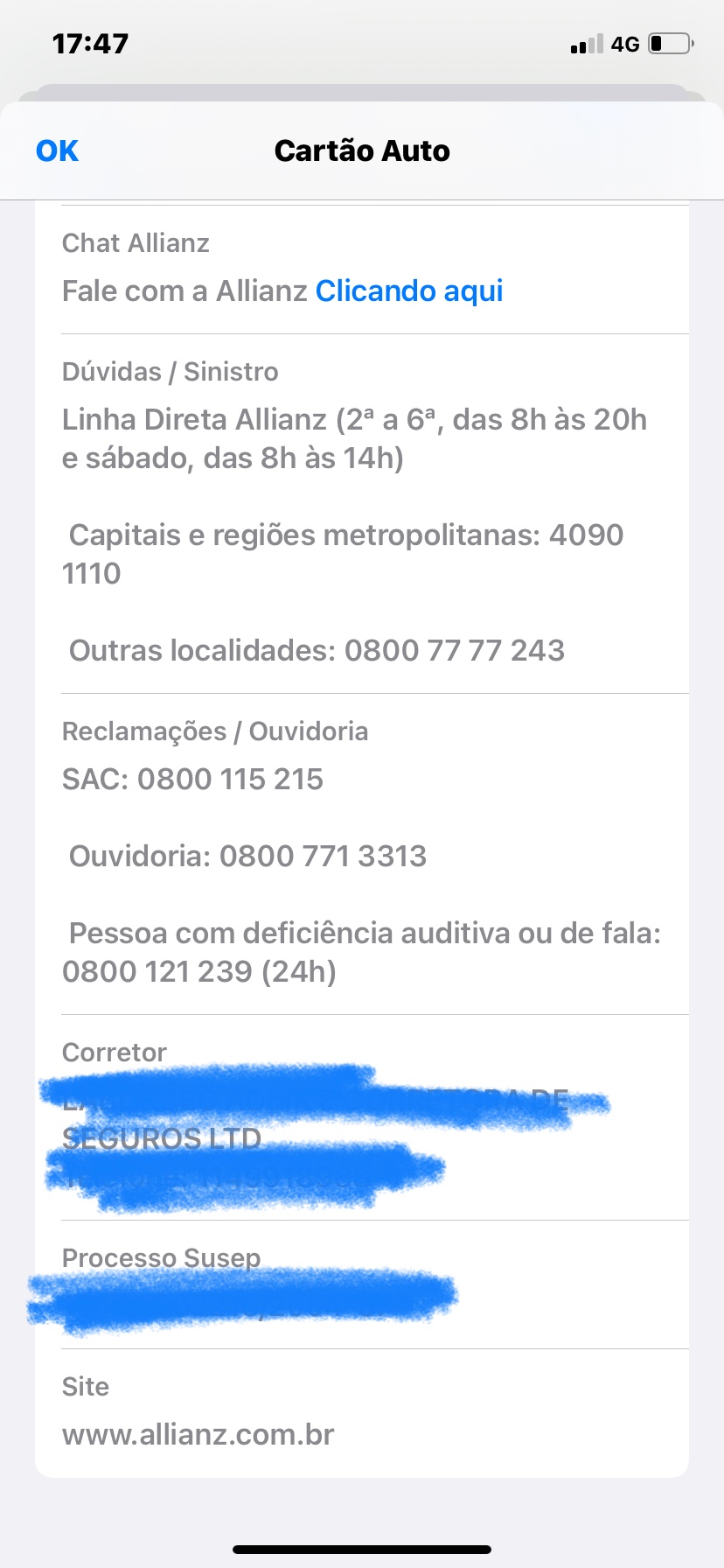 É um cartão que apenas aparece os contatos que o seguro do meu carro pode oferecer, porém, não aparece em lugar algum onde posso remover o mesmo.