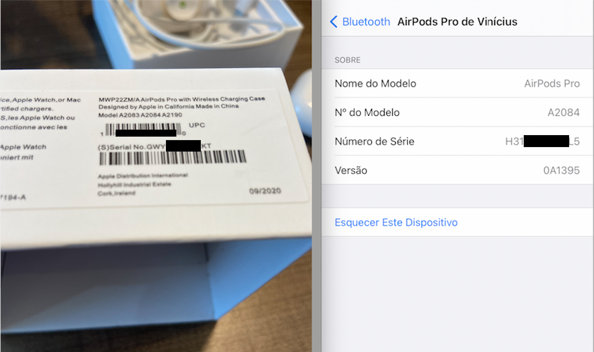 O número de série dos AirPods Pro que aparece no iPhone é diferente do número de série que está na caixa, na case e nos próprios AirPods. Como isso é possível?