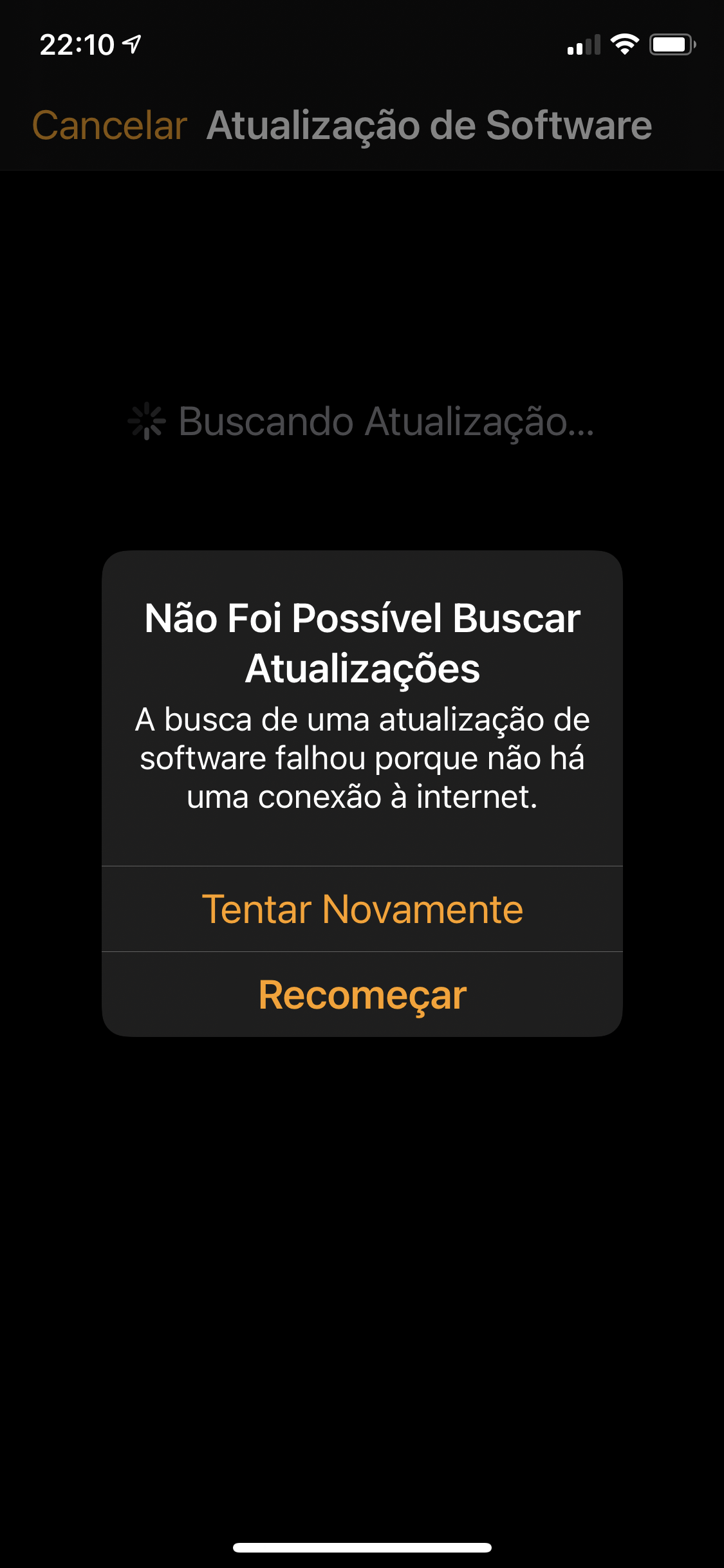 Estou tentando configurar meu Apple whatch série 3 com o iPhone XS , quando emparelho os dois, informa que o software está desatualizado e tem uma nova versão porém não consegue atualizar porque não tem conexão à internet , sendo que a mesma funciona normalmente. Como devo proceder?