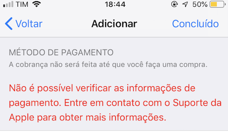 ID Apple - Não é possível verificar as informações de pagamento