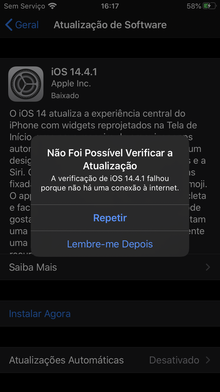 IOS 14.4.1 não atualiza!