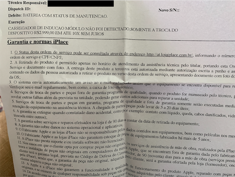 Hoje eu fui até uma assistência técnica autorizada da Apple aqui no RJ e não consegui trocar a bateria do iPhone 8 da minha filha. No diagnóstico realizado pela loja, ficou constatado que o carregador de módulo de indução não foi detectado, ou seja, me cobraram 2.999,00 pela troca do dispositivo. Já realizei tal procedimento quando tinha um iPhone 6s e na Apple do Village Mall da Barra, será que posso estar sendo lesado? Obviamente não deixei realizarem o serviço. Alguém me ajuda?