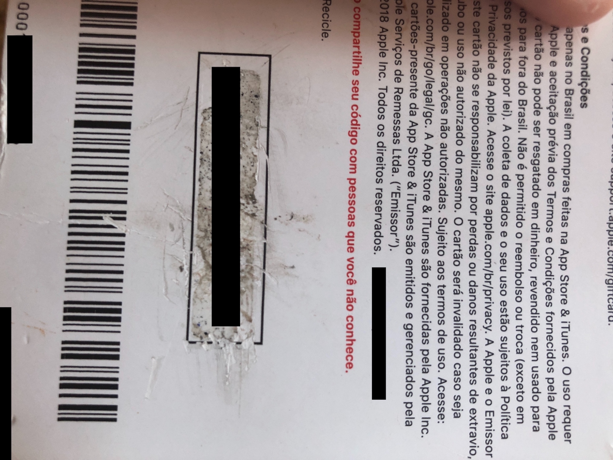 Se você não conseguir ler o código no verso do cartão por estar arranhado ou danificado, entre em contato com o Suporte da Apple.