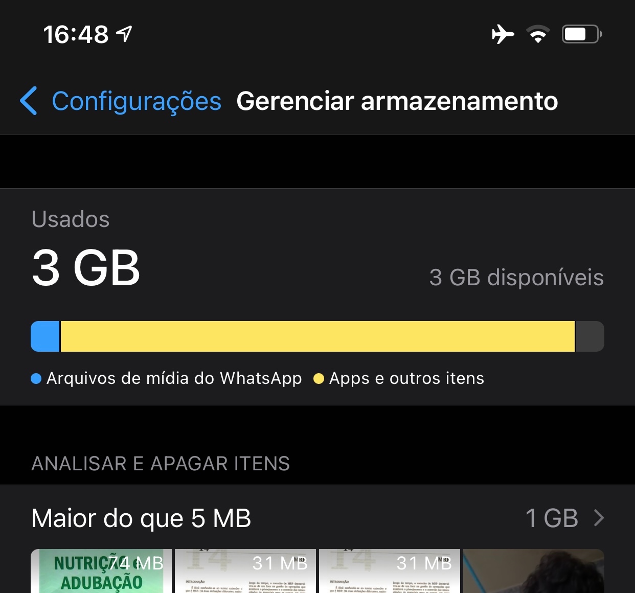 o backup do iCloud está disponível mas no caso do WhatsApp, ele diz que o armazenamento do celular está cheio e me pede para liberar espaço.