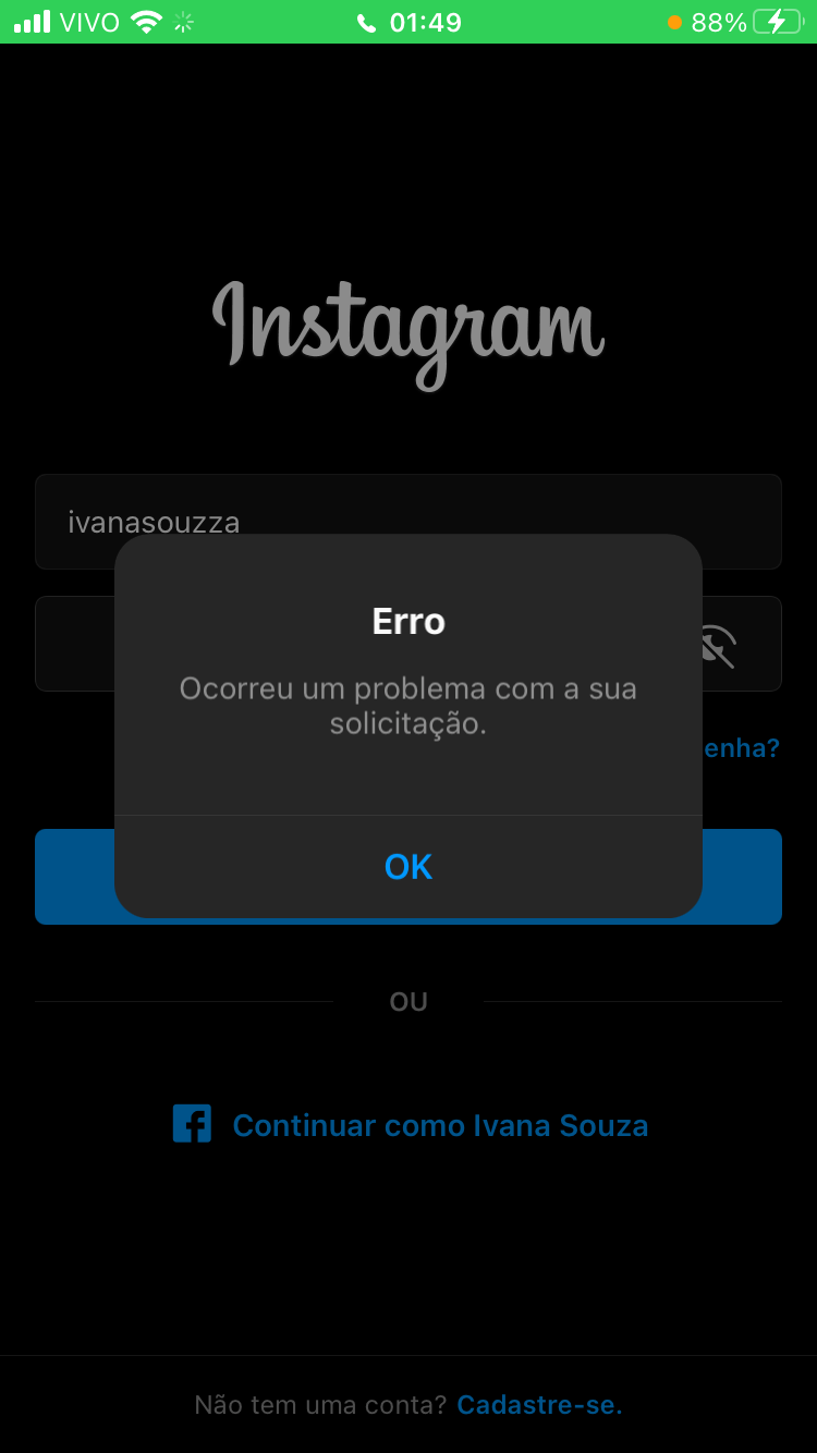 Por que da erro quando tento acessar o instagram pelo app somento no meu celular? O que devo fazer?