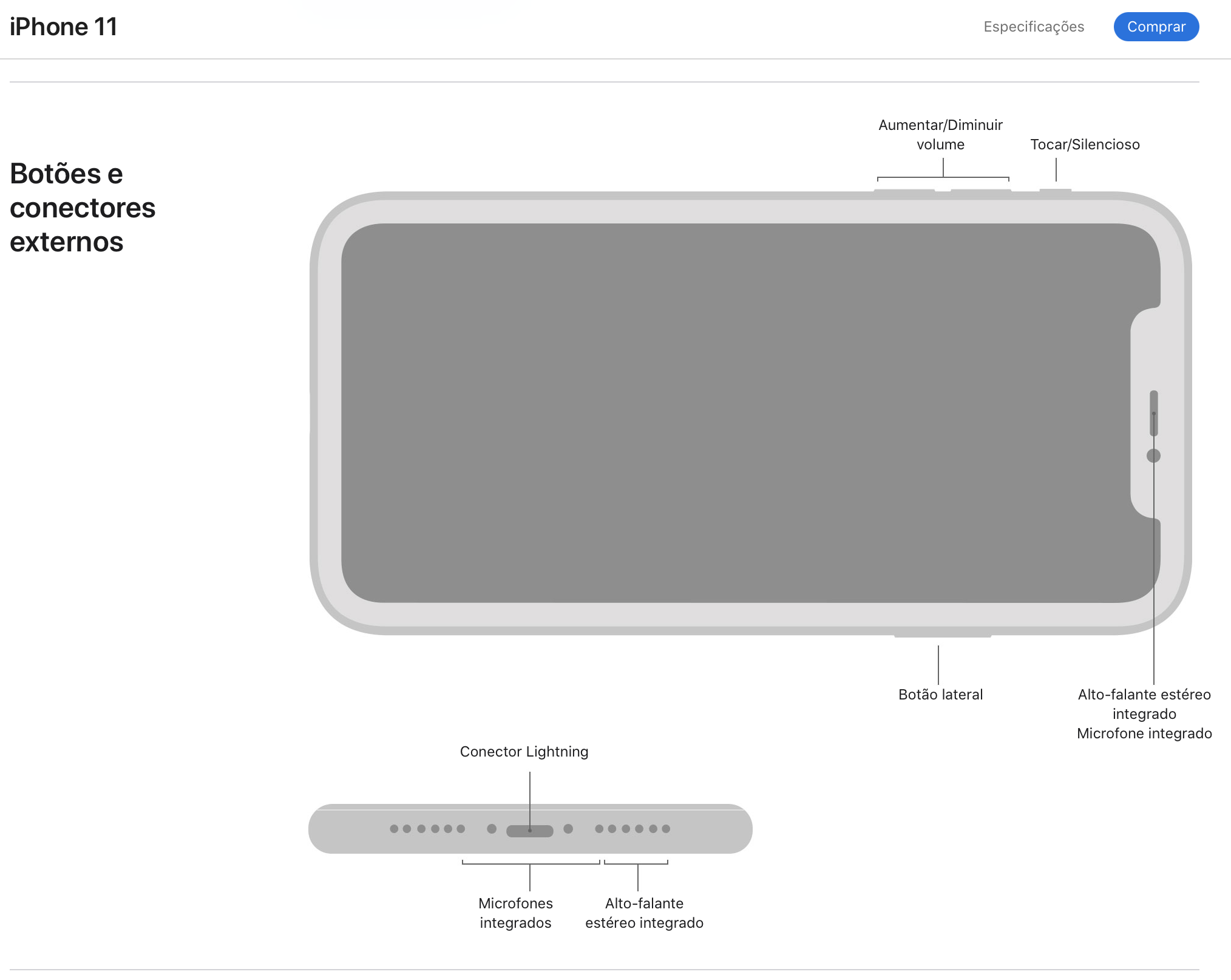 Segue imagem ilustrativa retirada do site iPhone 11 - Especificações - Apple (BR). Assim você pode visualizar o que é cada coisa em seu iPhone.