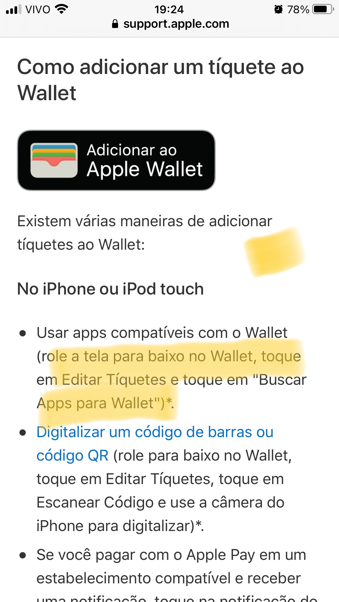 Tentei achar o item mencionado para colocar tickets no Wallet e não consegui. Como se coloca tickets no Wallet??