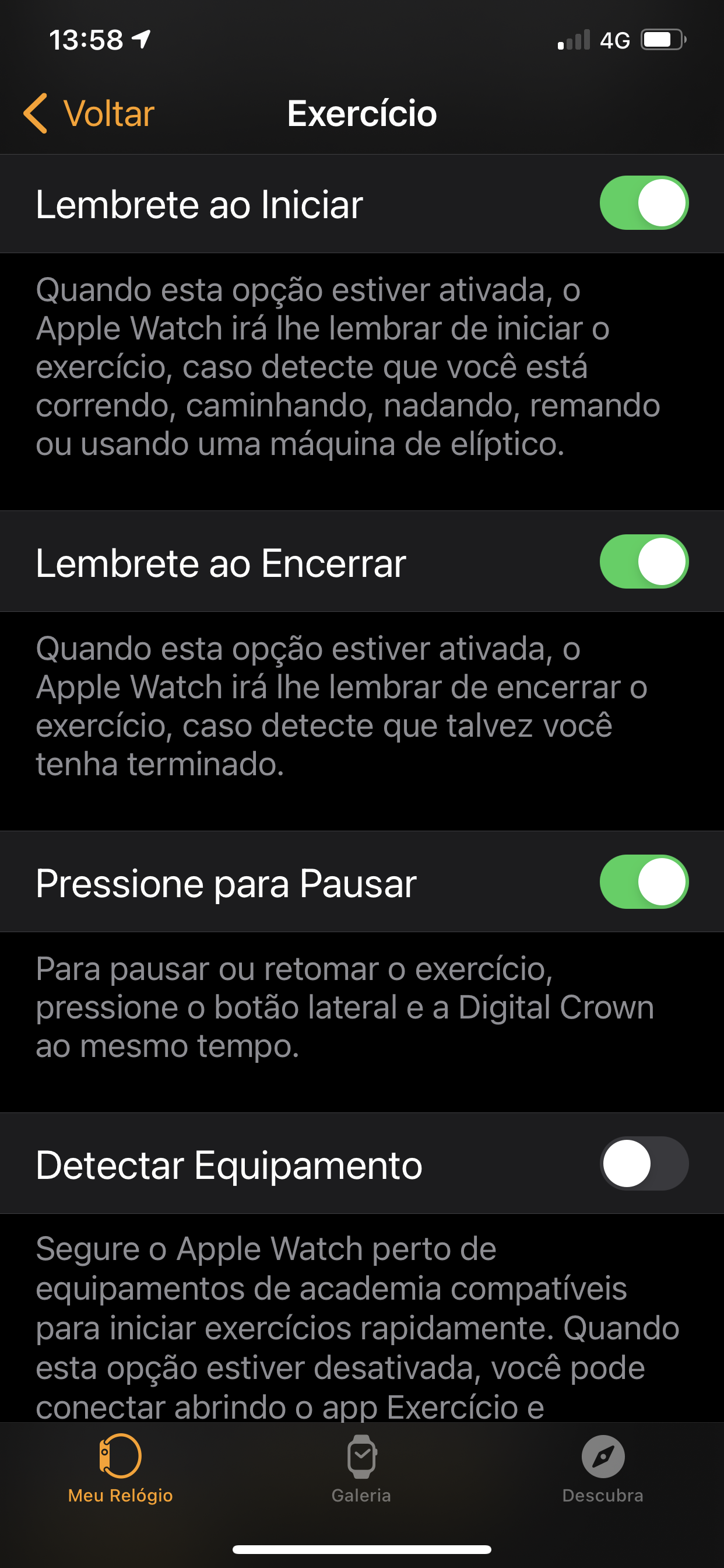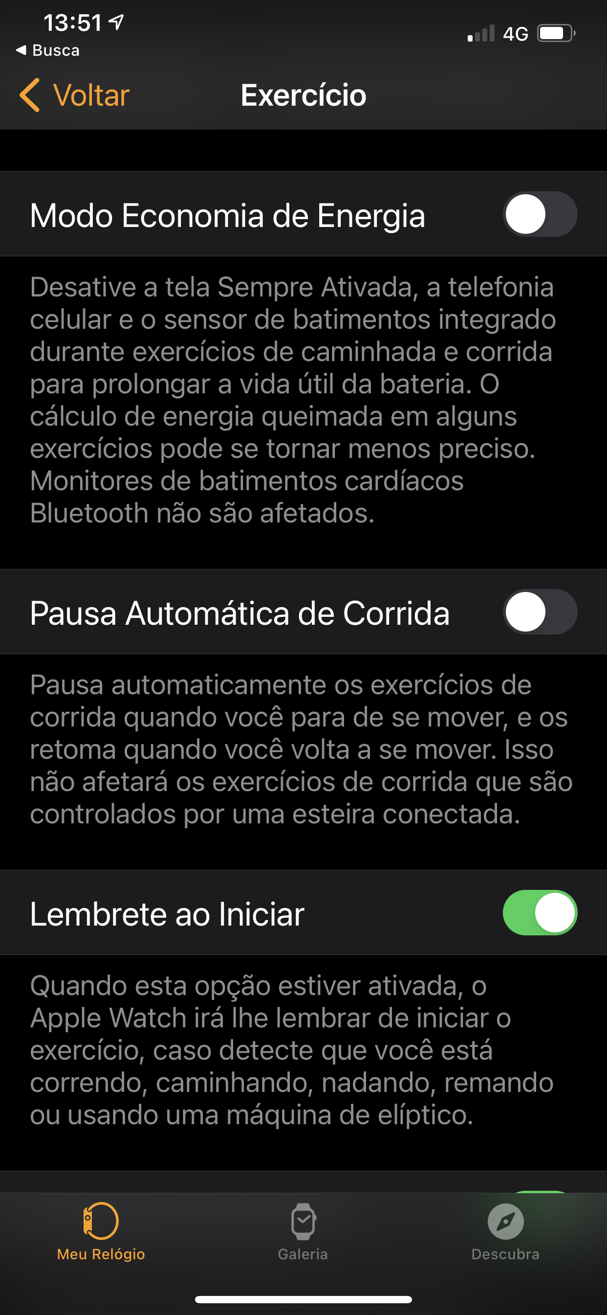 Uma coisa também que é bom você verificar e se durante a atividade física o Apple Watch não está se deslocando do pulso (isso ocorre quando o relógio fica um pouco folgado no pulso) fazendo com ele entre em tela de bloqueio (pedindo o código para desbloquear), isso talvez possa também colocar o exercício em pausa.