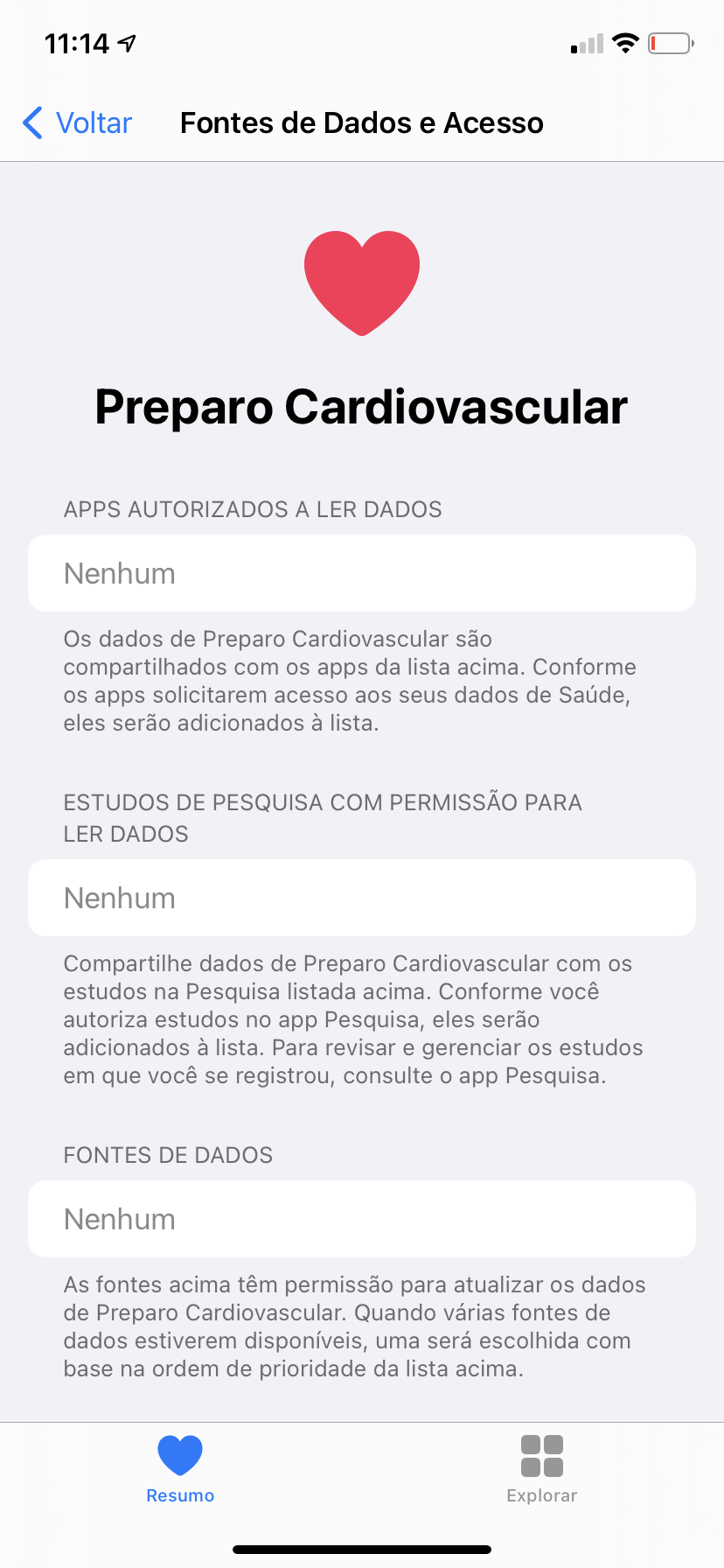 iPhone - Adicionar fonte de dados para preparo cardiovascular