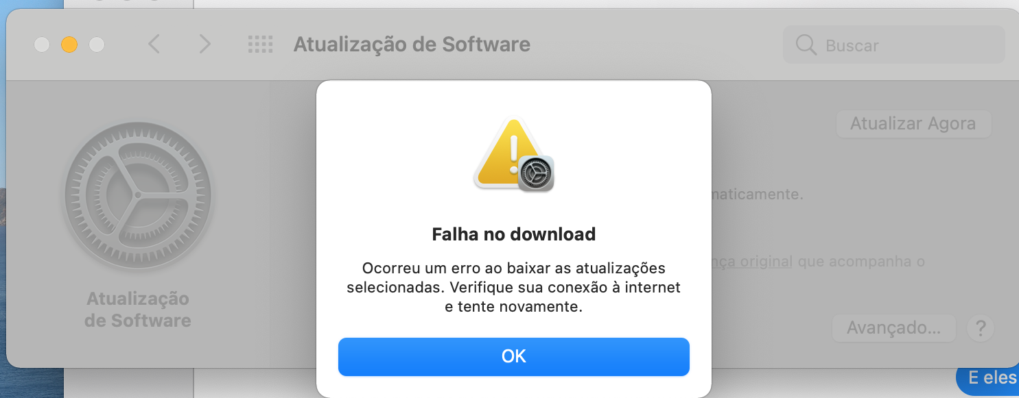 No meu caso, meu Macbook pro 2018, não havia nenhum problema anterior e possuía a versão Big Sur 11.3, não conseguindo fazer a atualização normalmente via App Store, acusando esse mesmo erro da imagem, sem que houvesse problemas de conexão.
