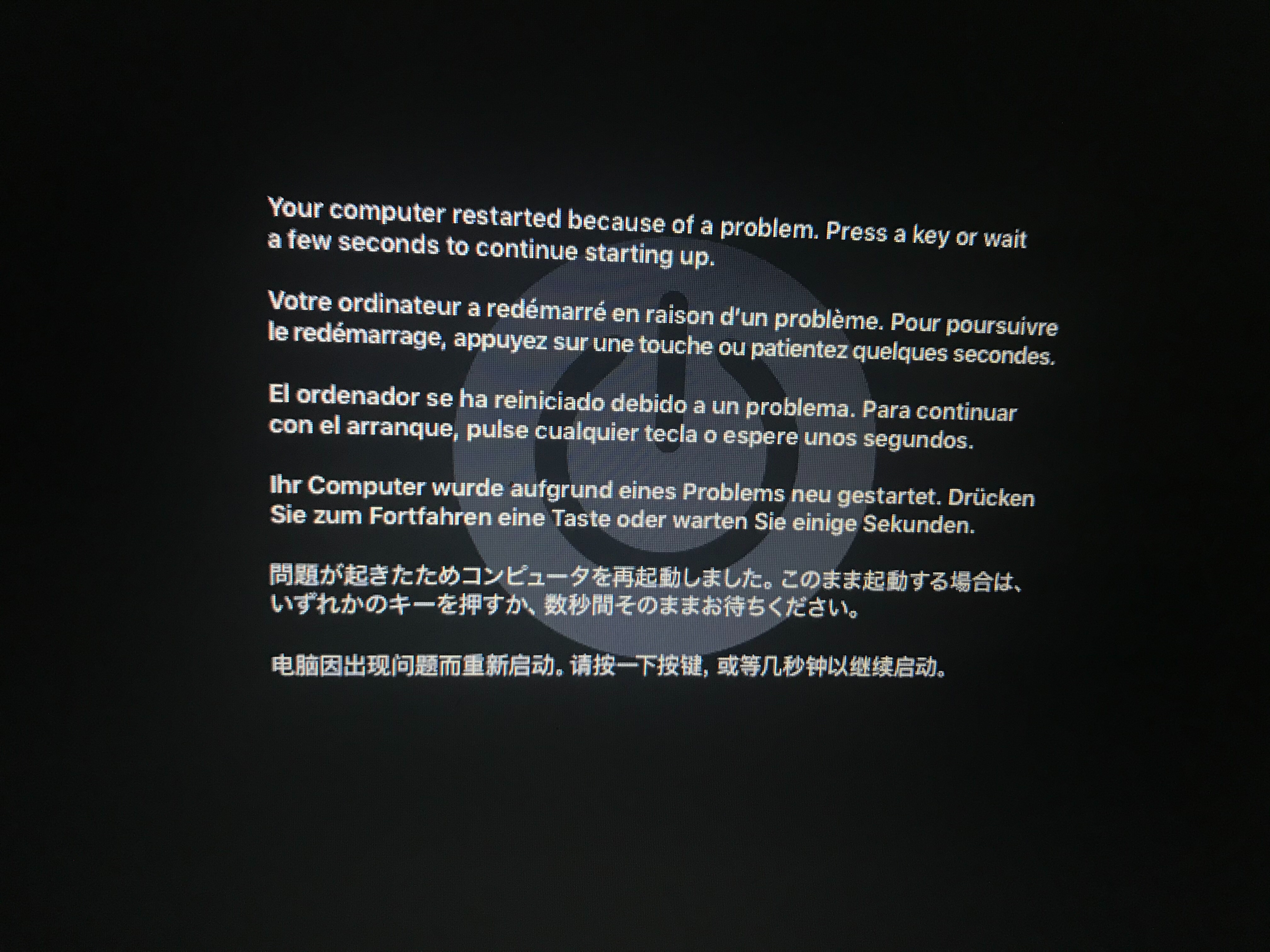 Meu mac fica reiniciando e nao sai disso. Entra na tela preta com a maçã com a barra embaixo “carregando” e depois vai para uma tele com a frase “your computer restarted because of a problema...” a frase estáem varios idiomas. Depois tudo se repete
