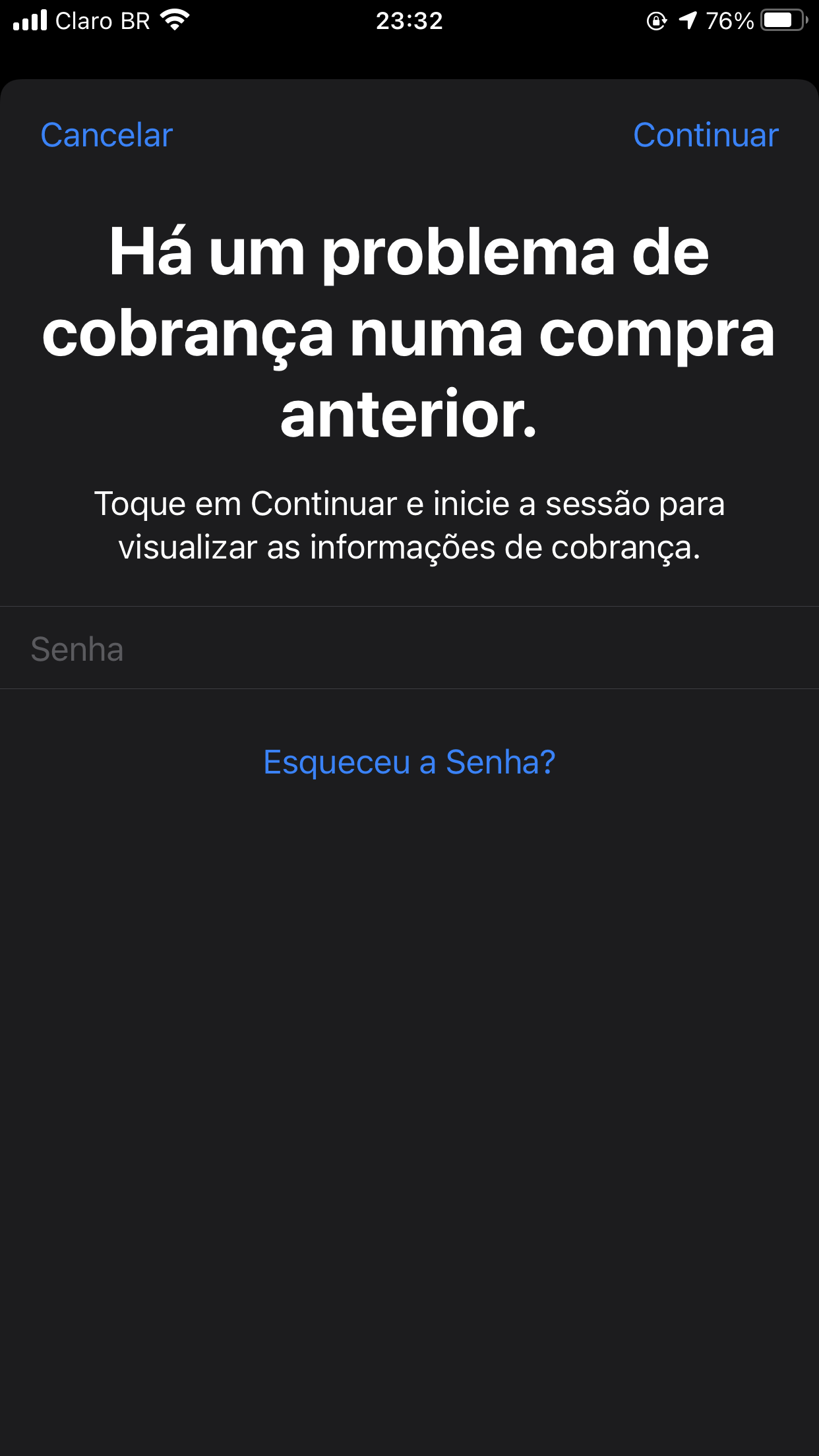 Não consigo atualizar e nem baixar os aplicativos, aparece a mensagem dizendo que há um problema de cobrança numa compra anterior , o que devo fazer?