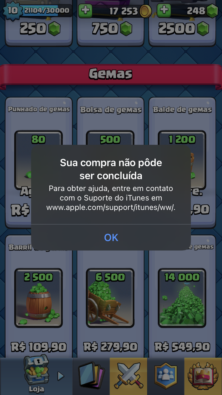 Se sua forma de pagamento for recusada na App Store ou iTunes Store