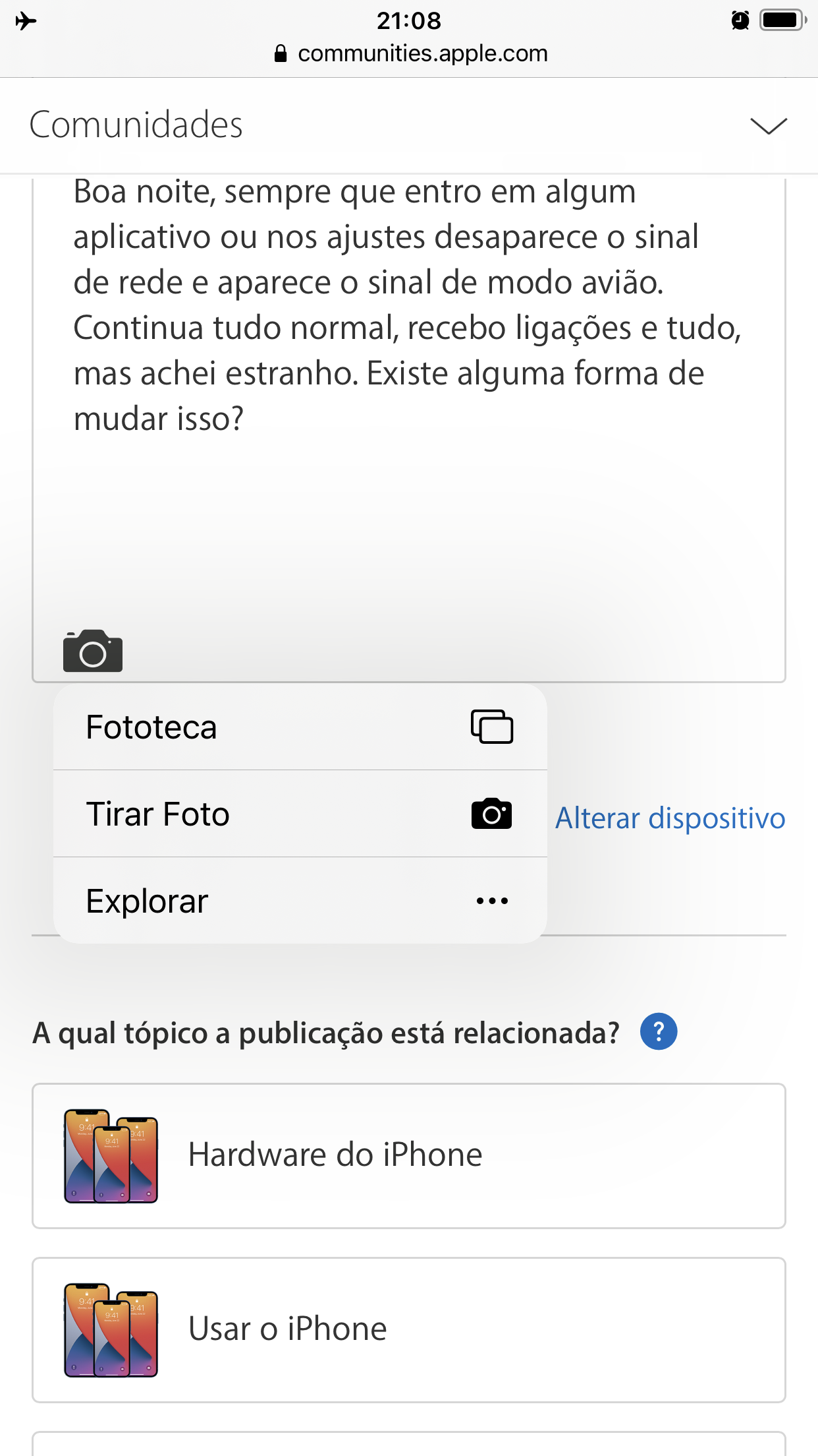 iPhone 8 Plus - O sinal de Modo Avião quando entro em app