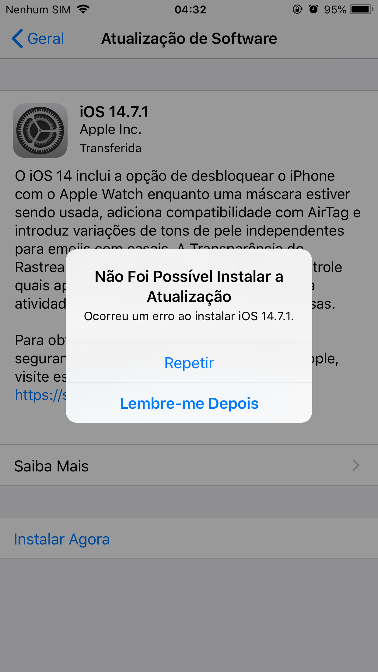 Não estou conseguindo atualizar meu iPhone 6s Plus, toda vez, tá dando erro, como faço?