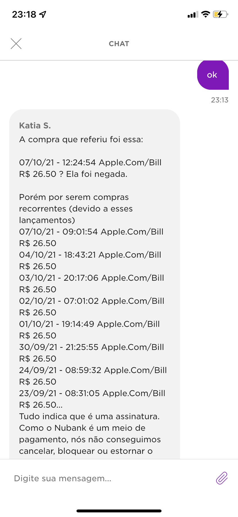 eu recebi várias cobranças desse tipo “ Apple.Com/Bill R$ 26.50” só que eu não tô com nenhuma assinatura ativa e não sei de onde é essa cobrança, alguém sabe como resolver?