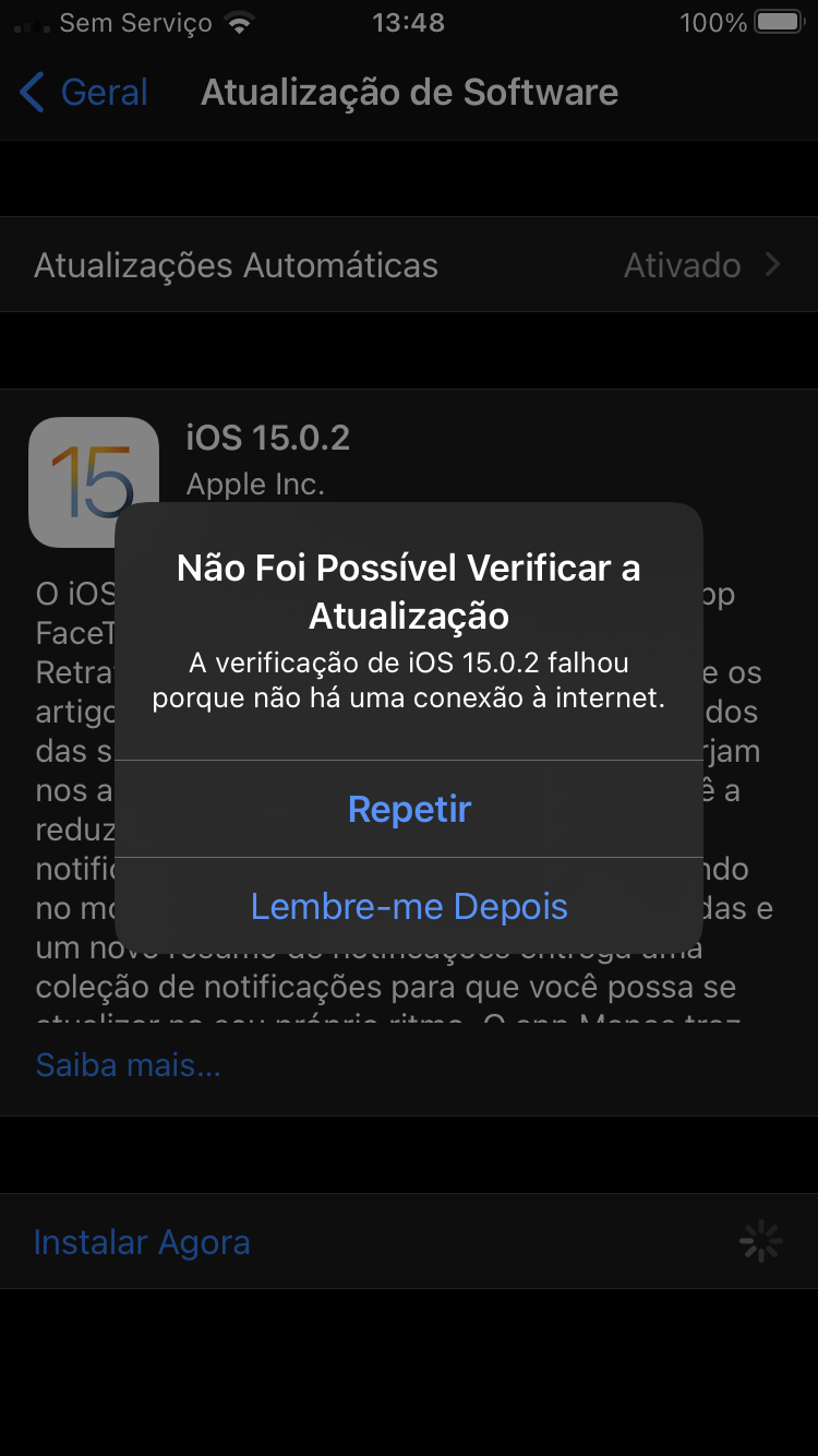 Não estou conseguindo atualizar o meu iPhone, fala que não estou conectado a uma rede de Wi-Fi