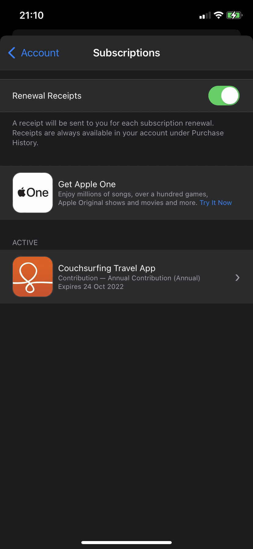 Complementando a resposta do CRICS, de acordo com a imagem enviada, você seguiu os passos sugeridos e cancelou a renovação automática da assinatura do app "Couchsurfing Travel App". A assinatura ficará ativa até o dia 24 de outubro de 2022, data em que a assinatura adquirida irá expirar (e não irá renovar automaticamente).