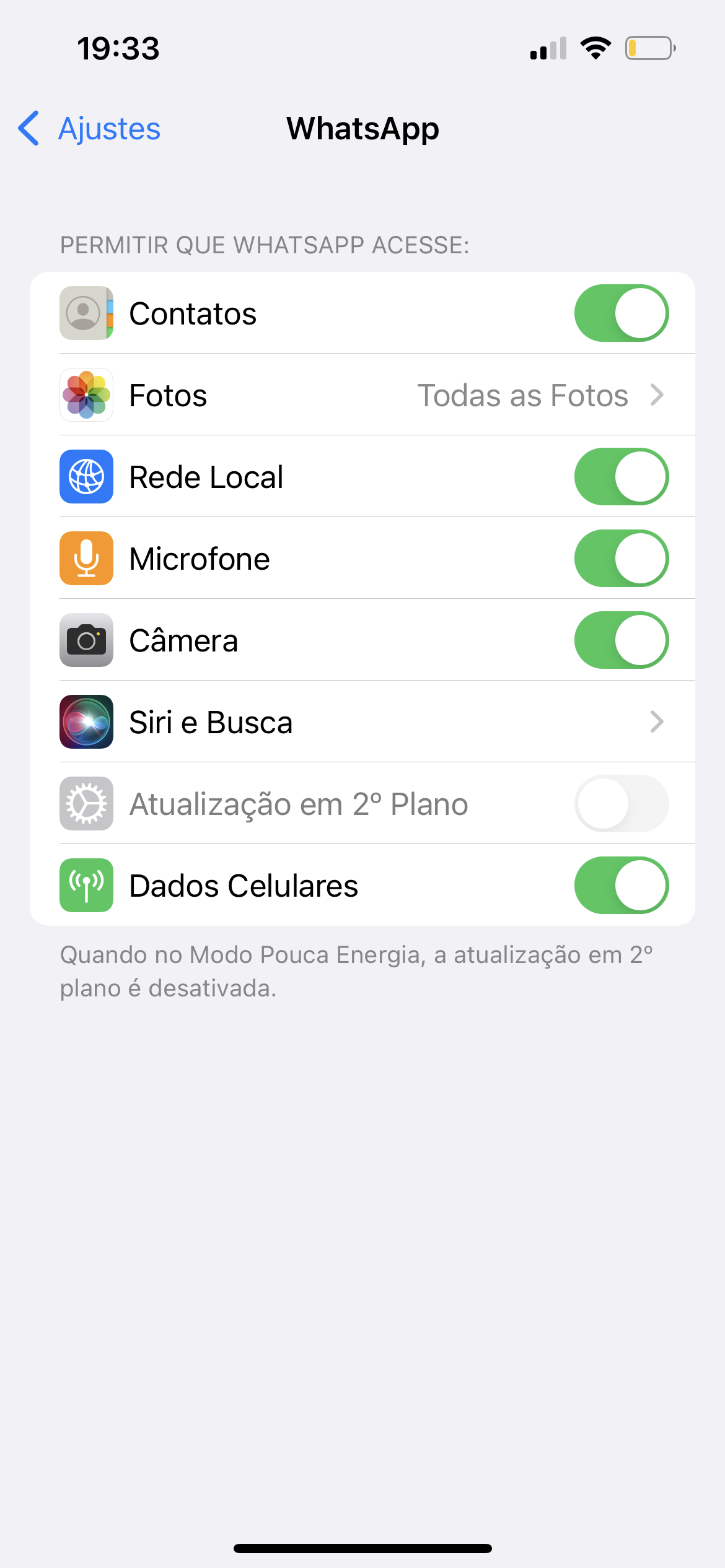 Não aparece opção de push do WhatsApp nas notificações das configurações