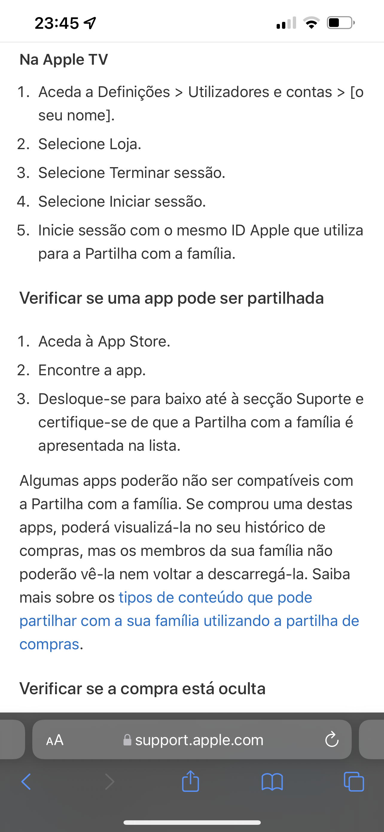 Alguns apps podem não ser compatíveis com o Compartilhamento Familiar. Se tiver adquirido um desses apps, você poderá vê-lo no histórico de compras, mas seus familiares não poderá vê-lo nem baixá-lo. Saiba mais sobre os tipos de conteúdo que você pode compartilhar com a família usando o compartilhamento de compras.