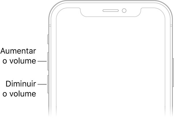 Quando estiver falando ao telefone ou escutando músicas, vendo filmes ou outras mídias no iPhone, você pode usar os botões laterais do dispositivo para ajustar o volume do áudio. Caso contrário, os botões controlam o volume do toque, dos alertas e de outros efeitos sonoros. Você também pode utilizar a Siri para aumentar ou diminuir o volume.